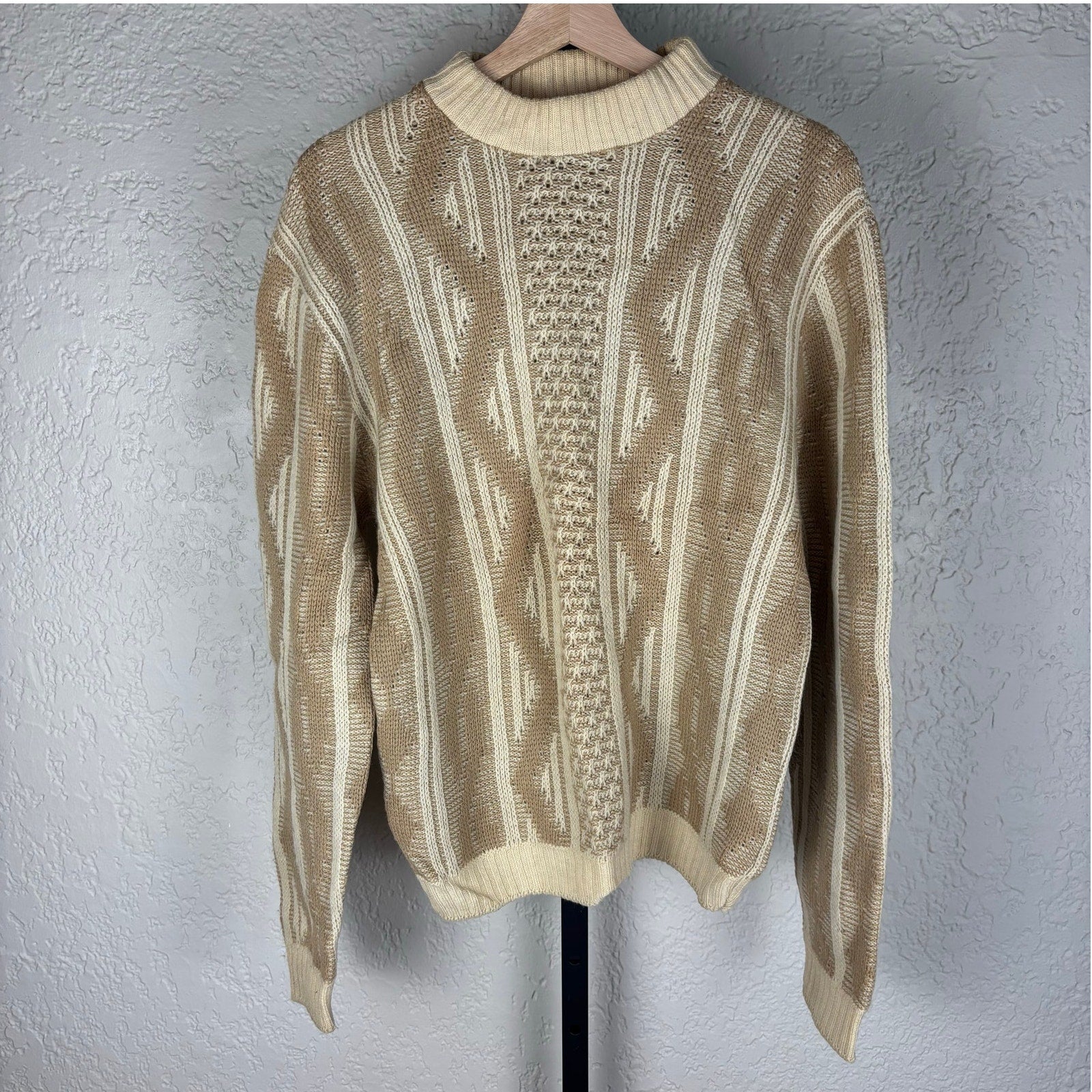1960s Duke Of York Wool Abstract Pattern Medium Knit Fisherman Sweater