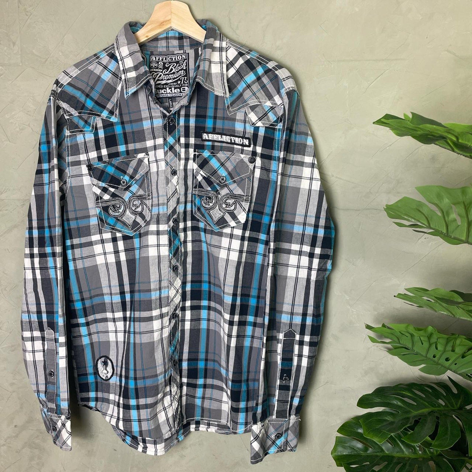 Affliction Buckle Black Premium Y2K Large Emo Flannel