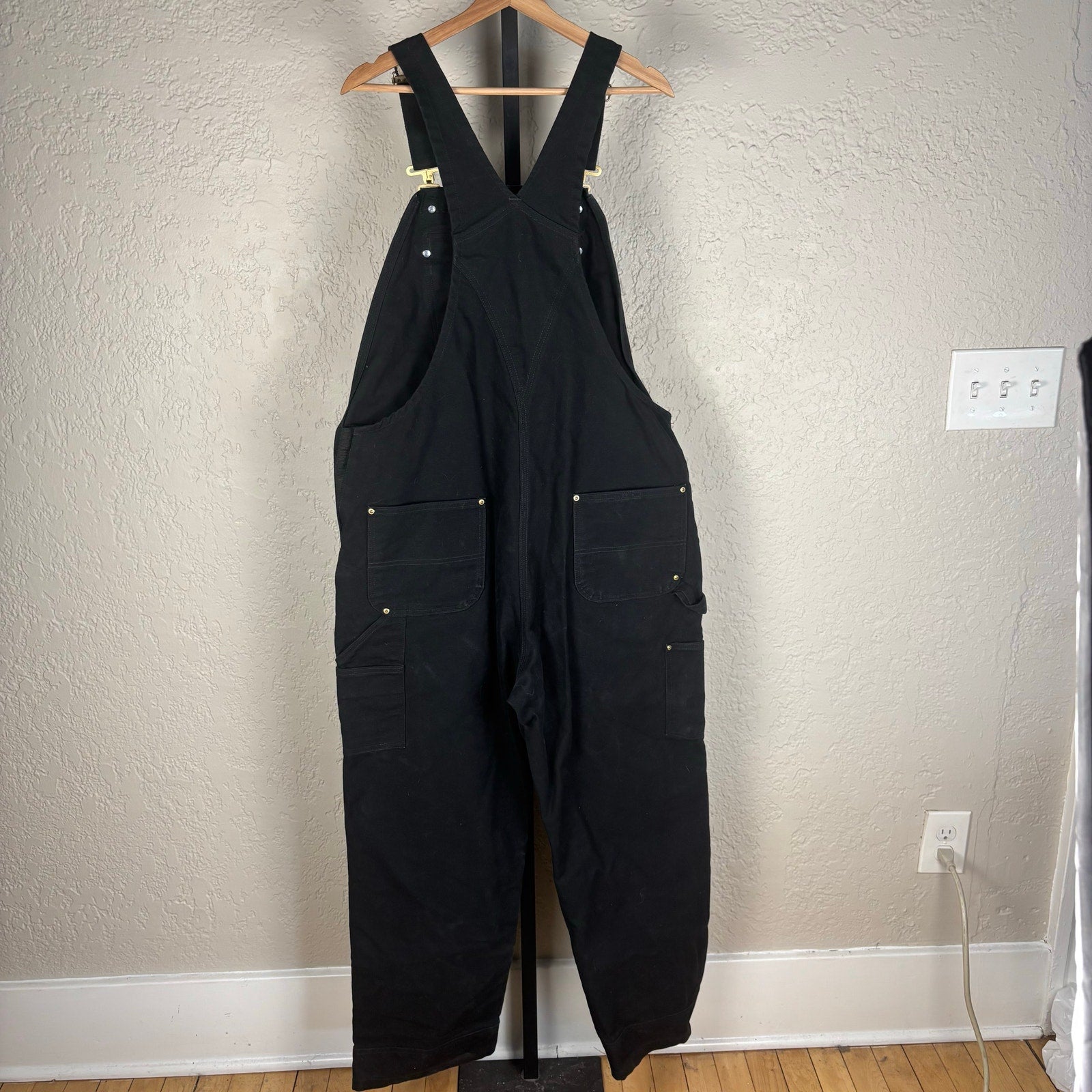 Carhartt Overalls Double Knee Black Workwear Duck Canvas Sz 40x30 Bibs