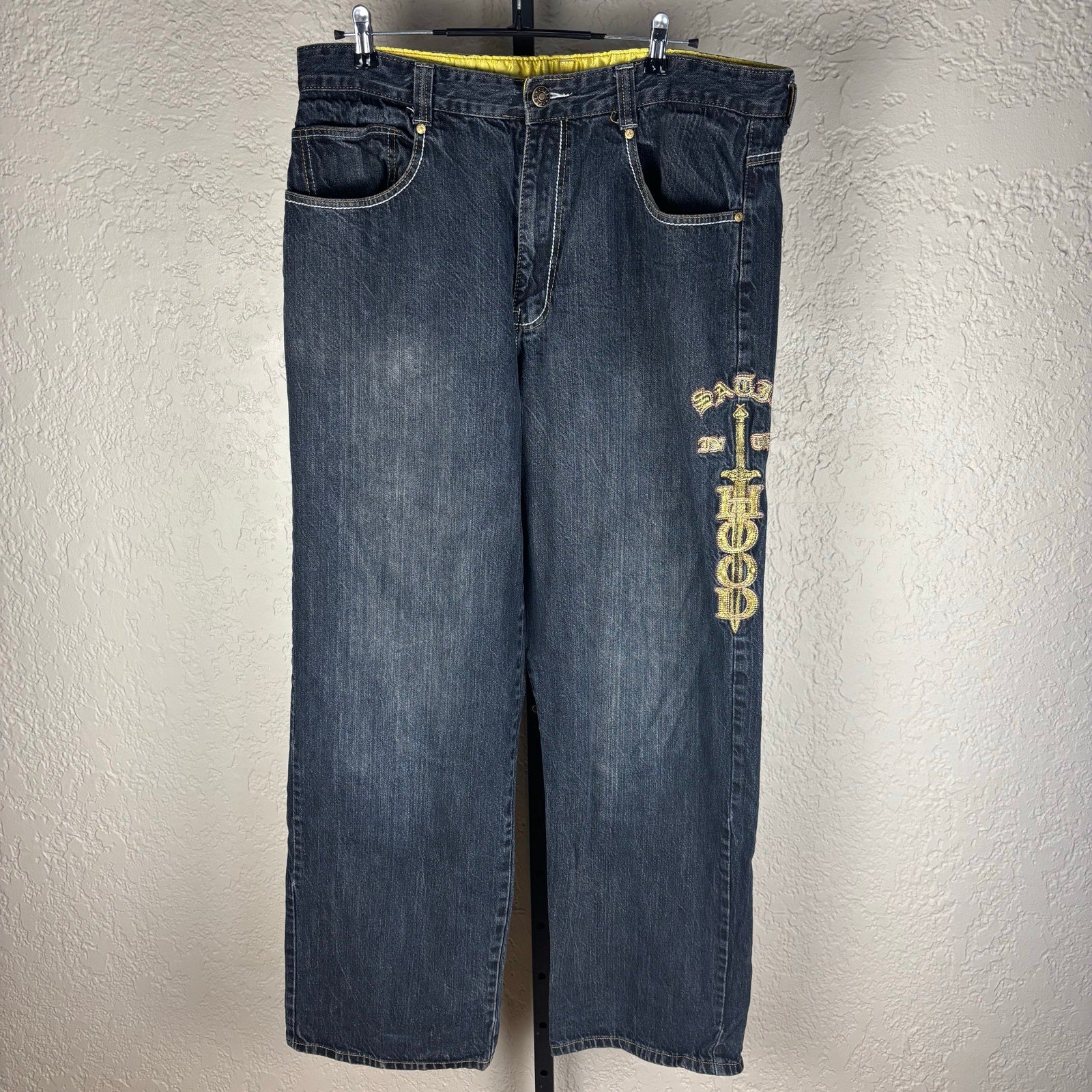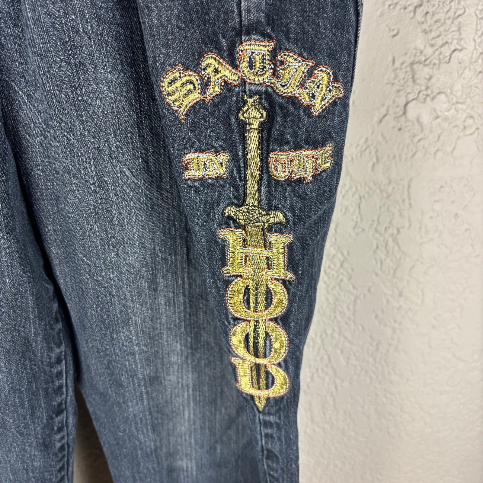 Ed Hardy Style Satin in the Hood Y2K Brand Baggy Embroidered Sz 40 Jeans