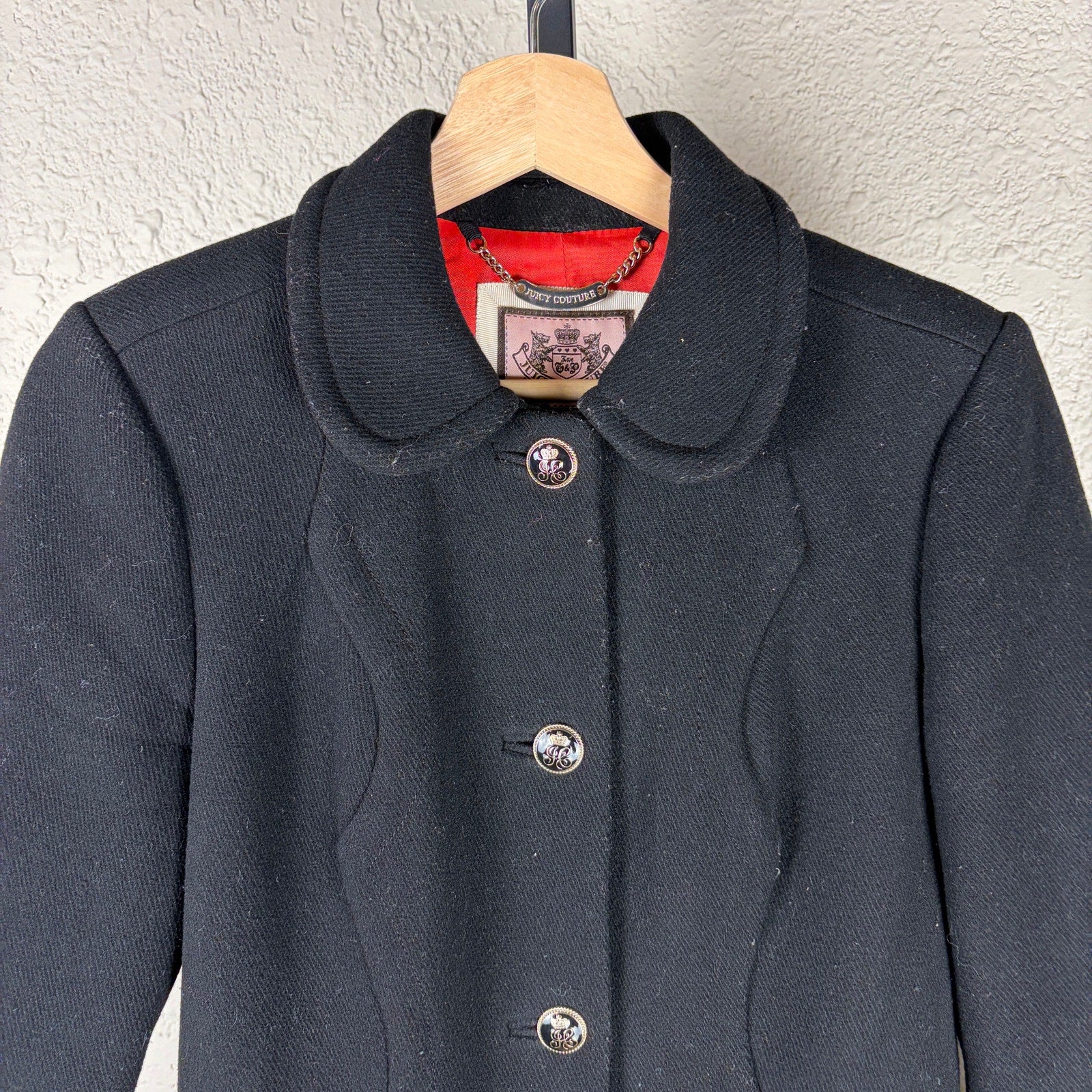 Juicy Couture Y2K Small Red Satin Lined Wool Trench Peacoat