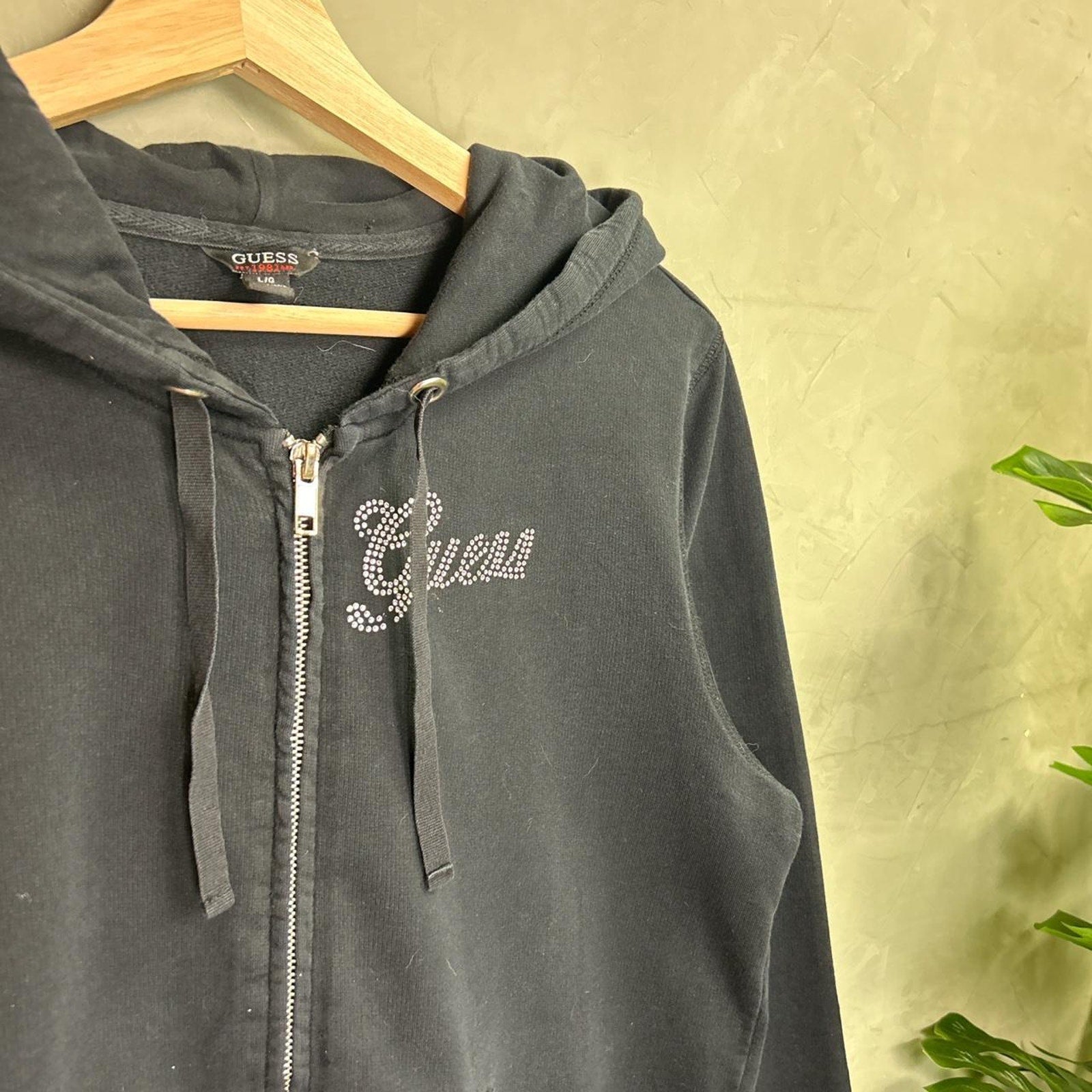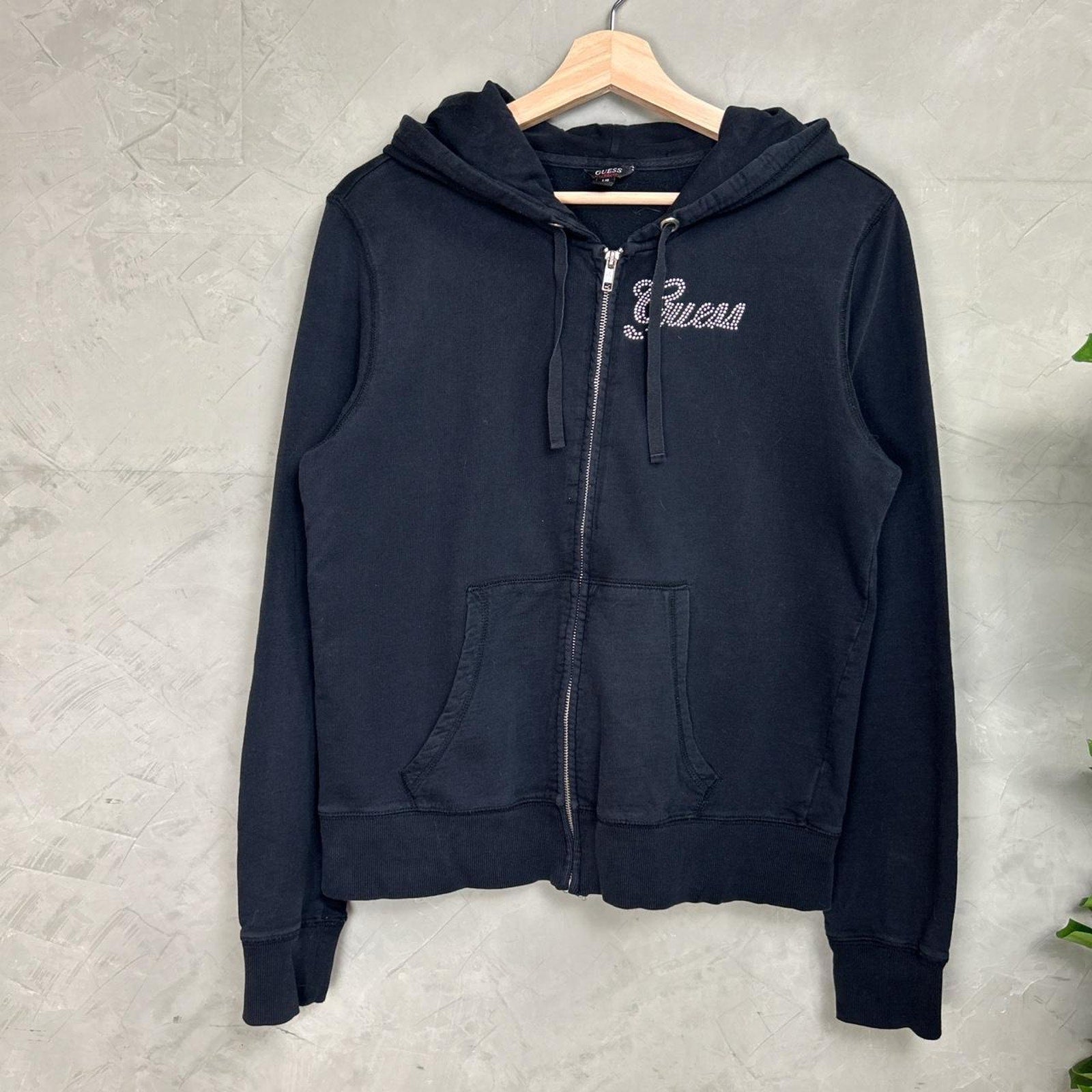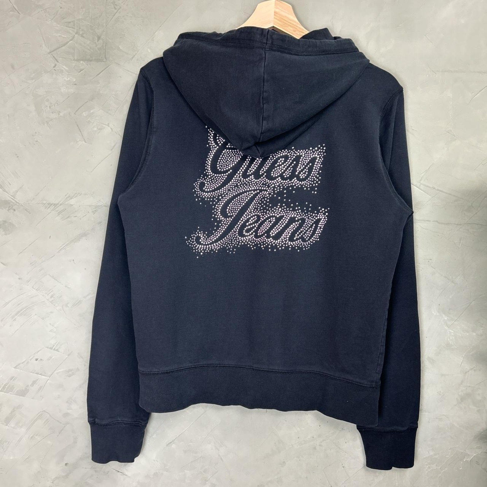 Large Y2K Guess Jeans Rhinestone Bedazzled Zip Up Sweater