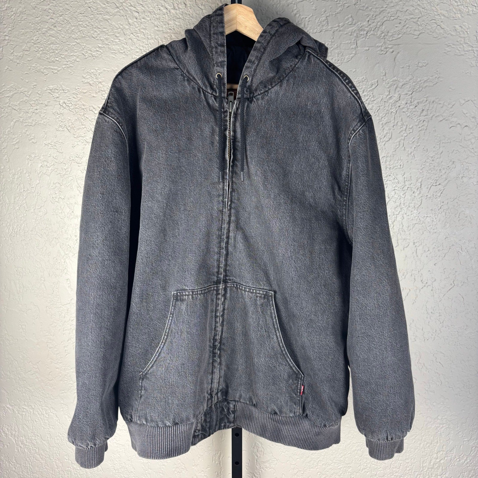 Levis Strauss Hooded Denim Workwear Carhartt Style XL Black Quilted Jacket