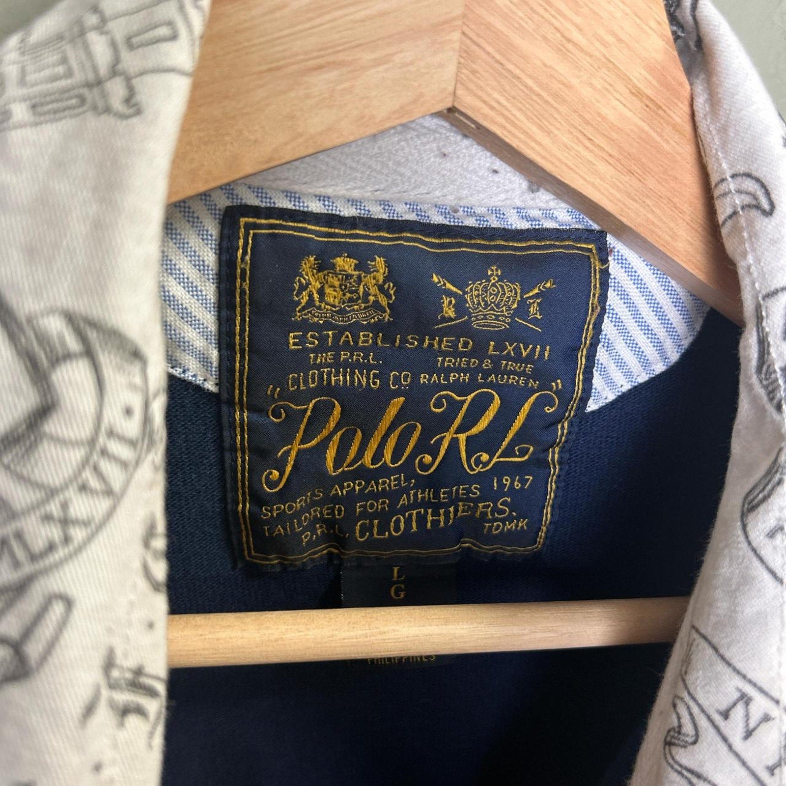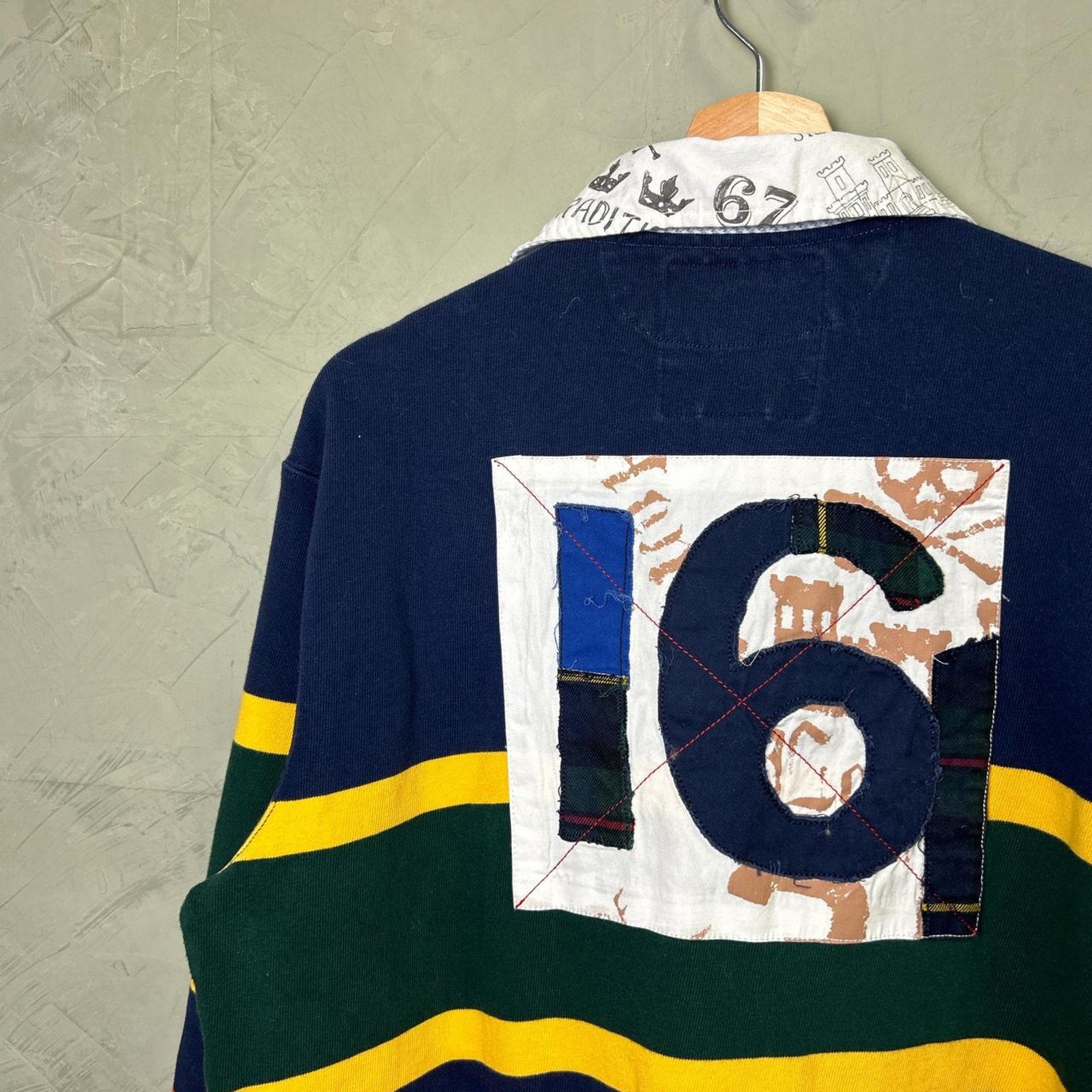 Polo Ralph Lauren RL 4 Color Block Numbered Striped Castle Lion Patch Longsleeve Rugby Shirt