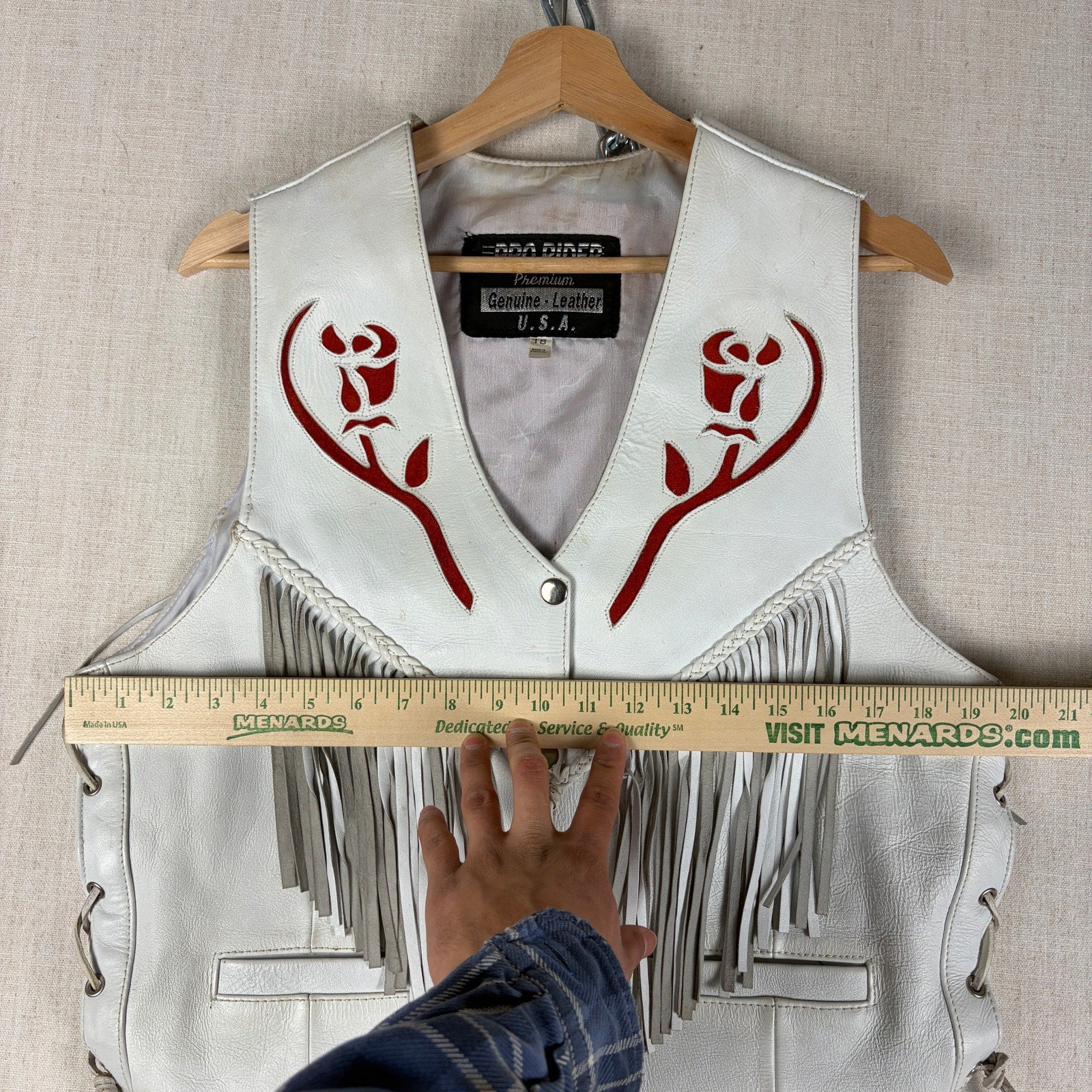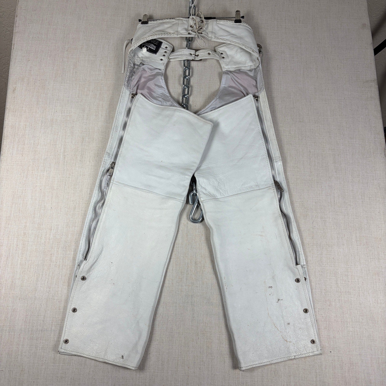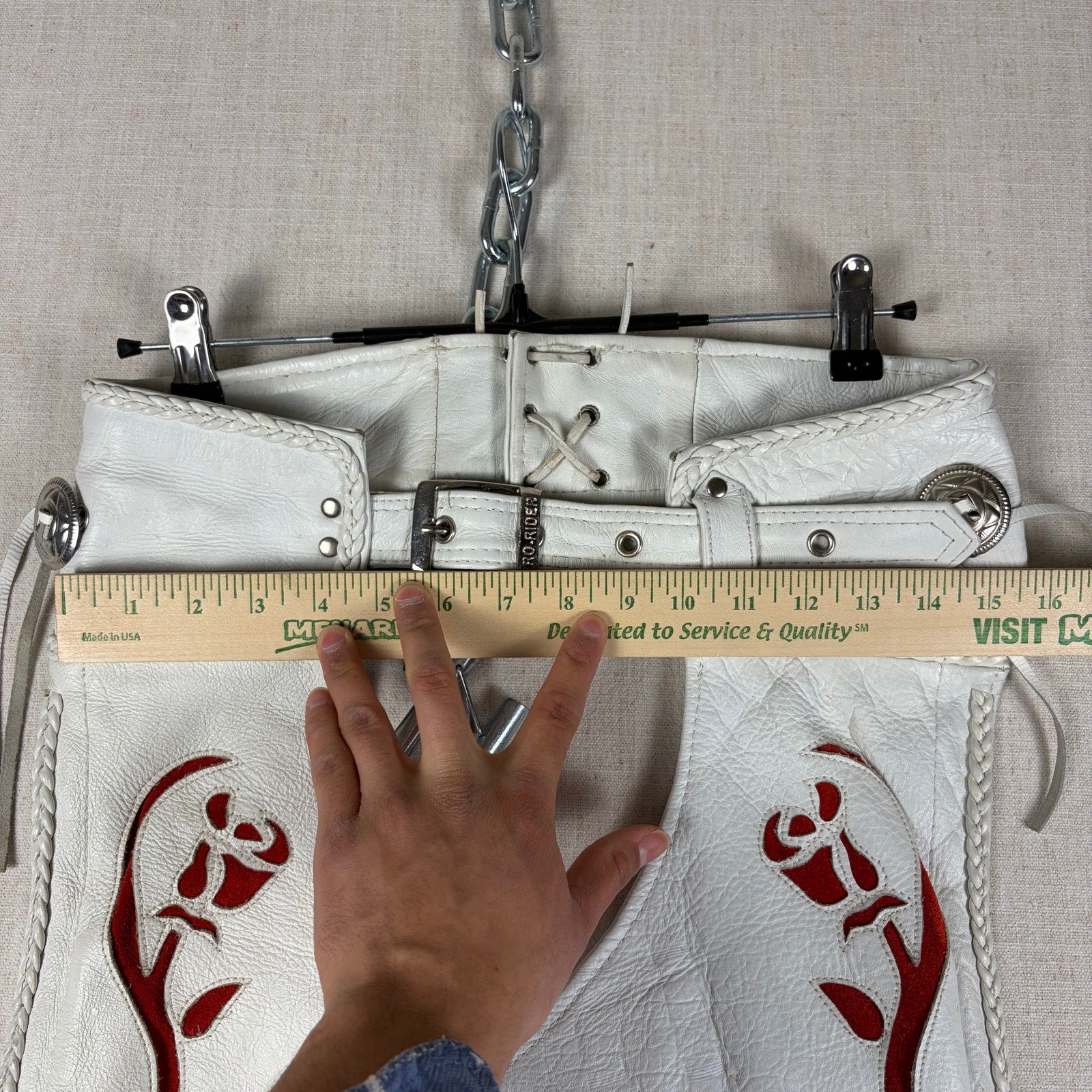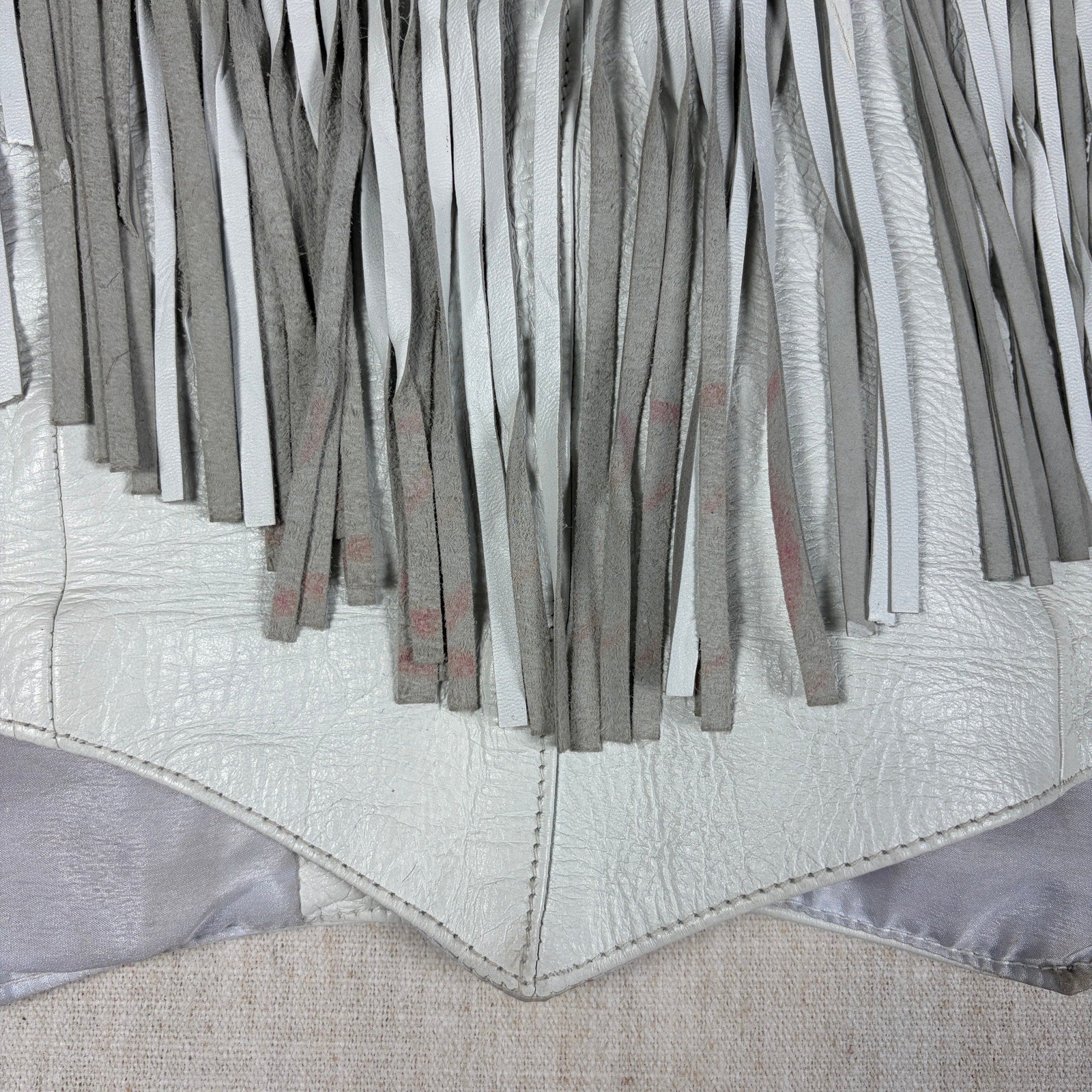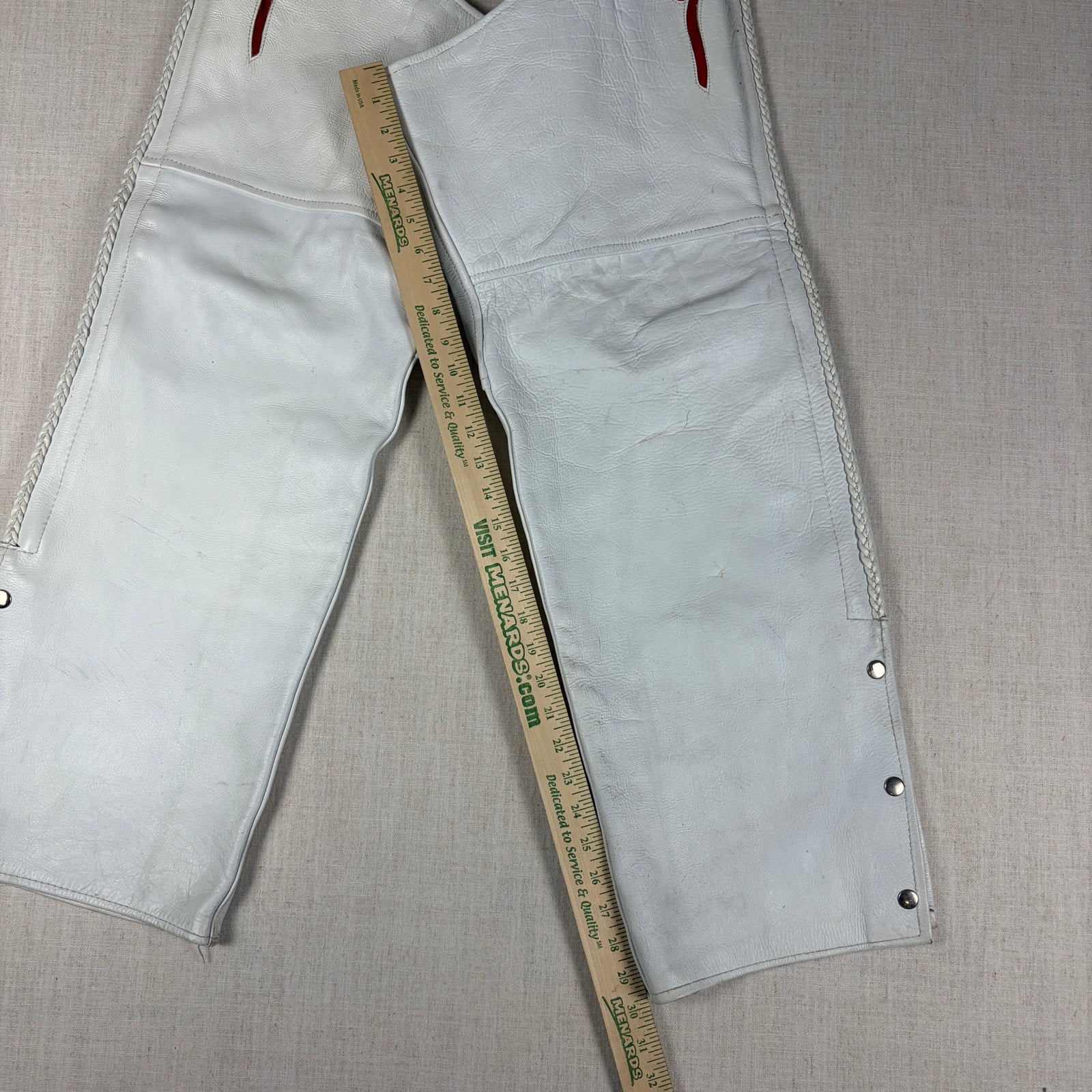 Pro Rider Premium Leather RARE Chaps + Vest Fringe Suede Rose Sz M/L White Set