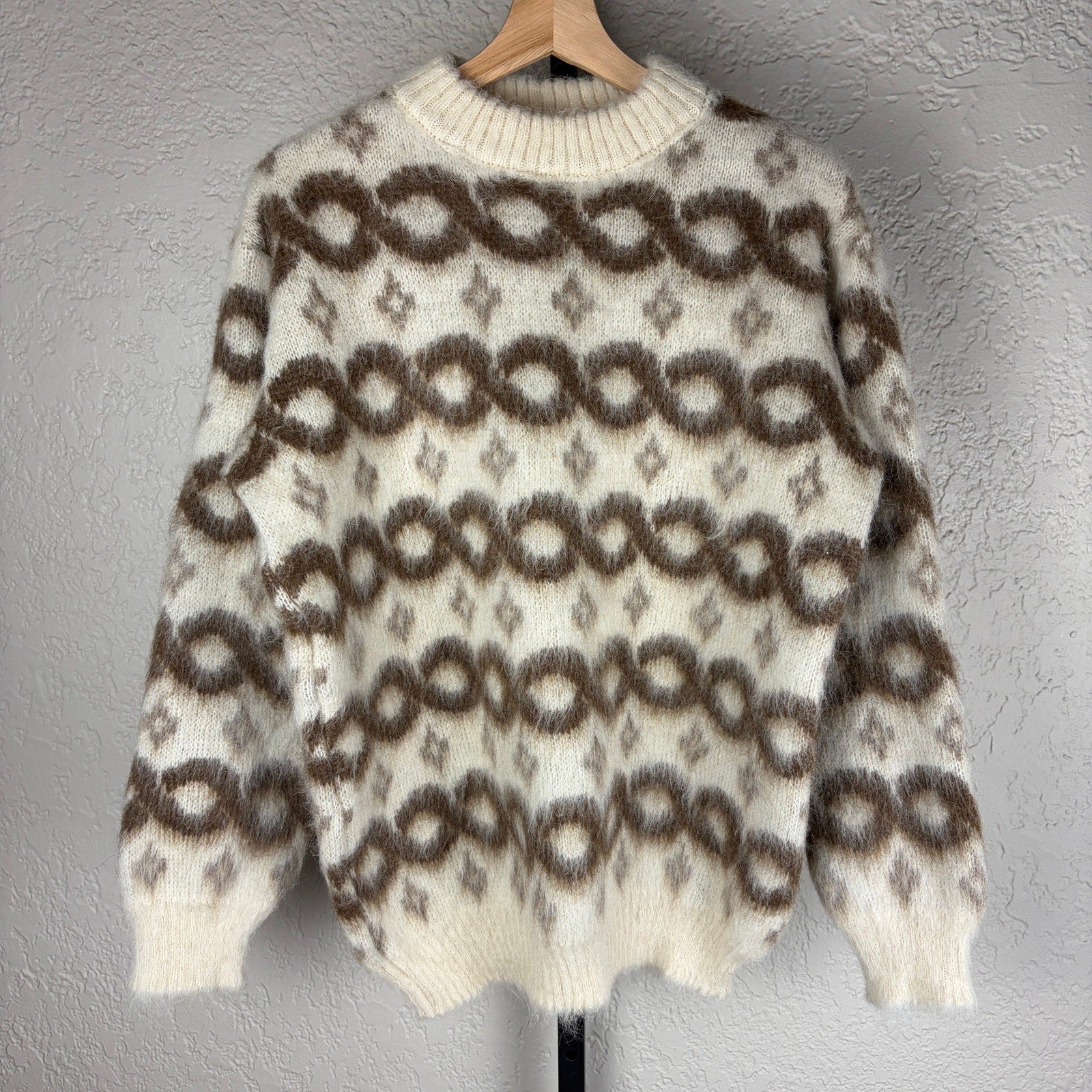 Vintage 1960s Baggy Shag Lord Jeff Icelandic Wool Fair Isle Mohair Large Sweater