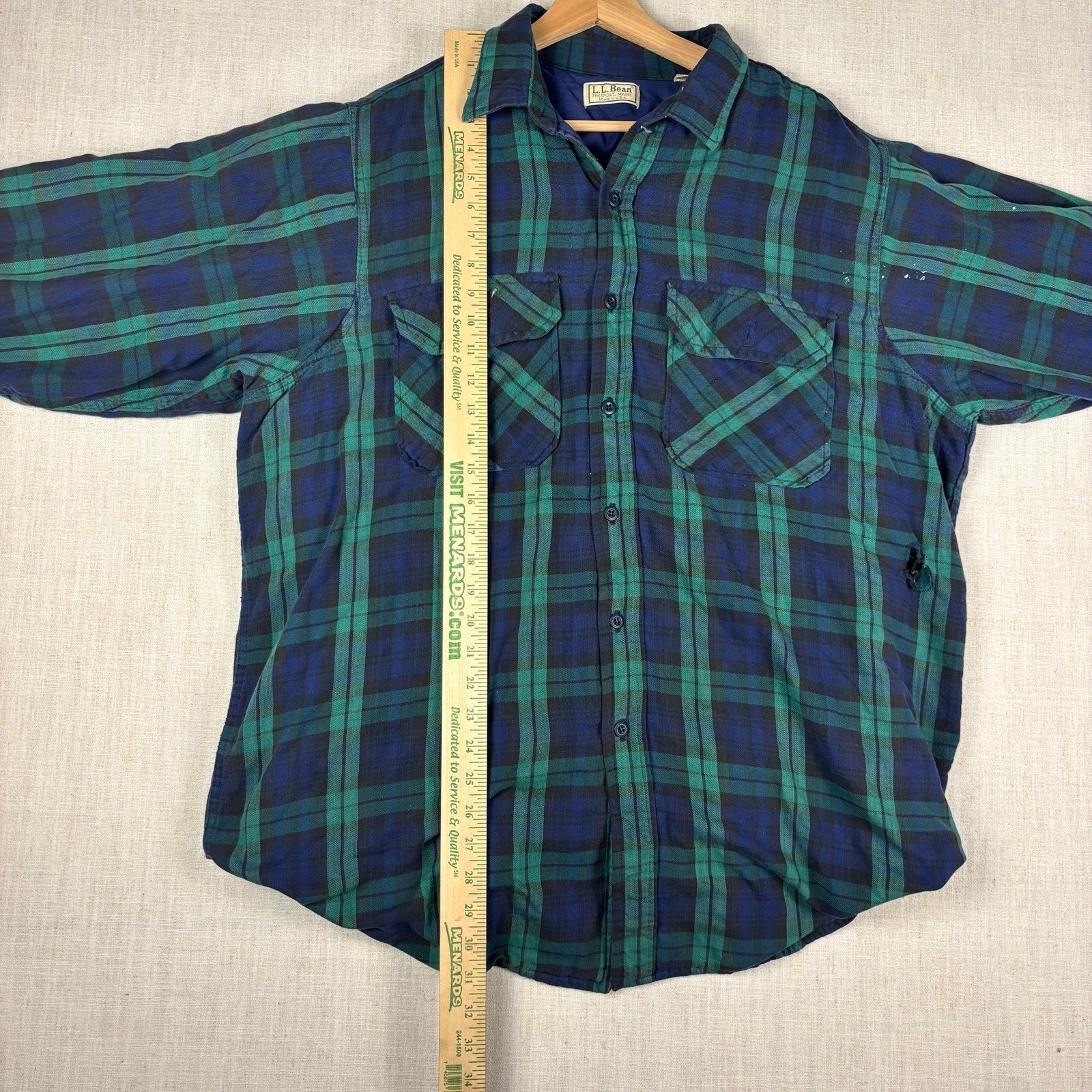 Vintage LL Bean Green Plaid Thinsulate Quilted Distressed Flannel XXL Jacket