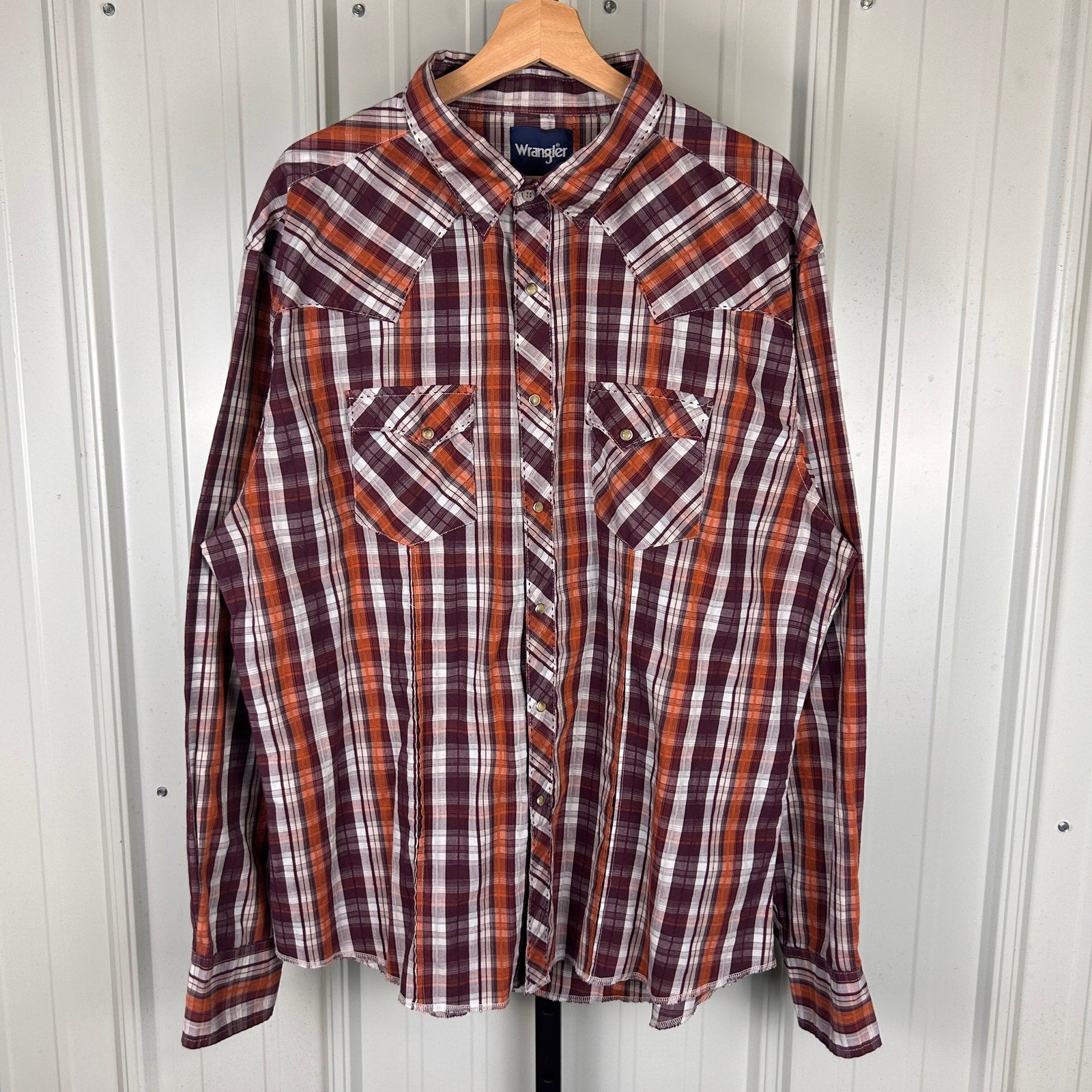 Wrangler Pearl Snap Cowboy XXL 90s Vintage Two Pocket Flannel