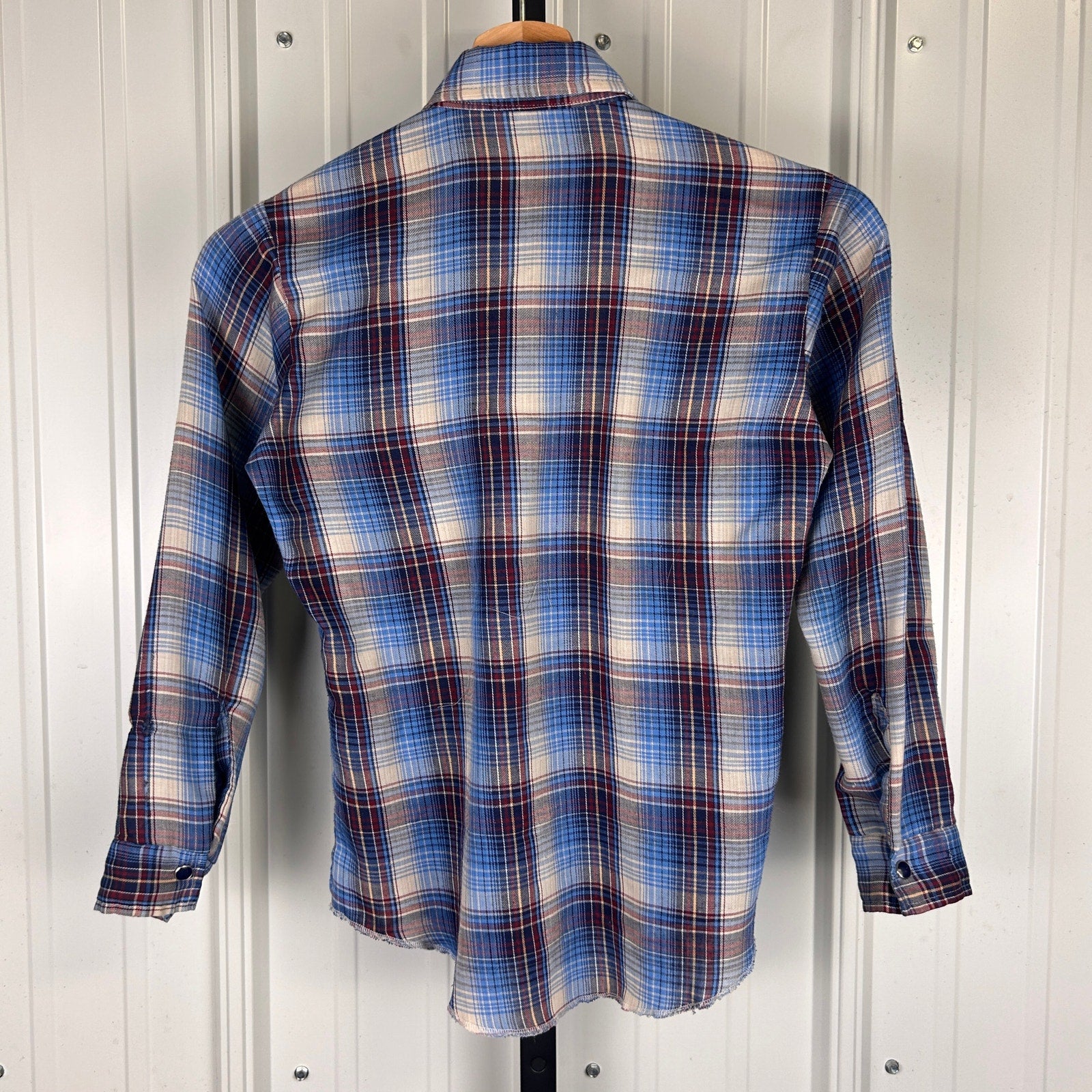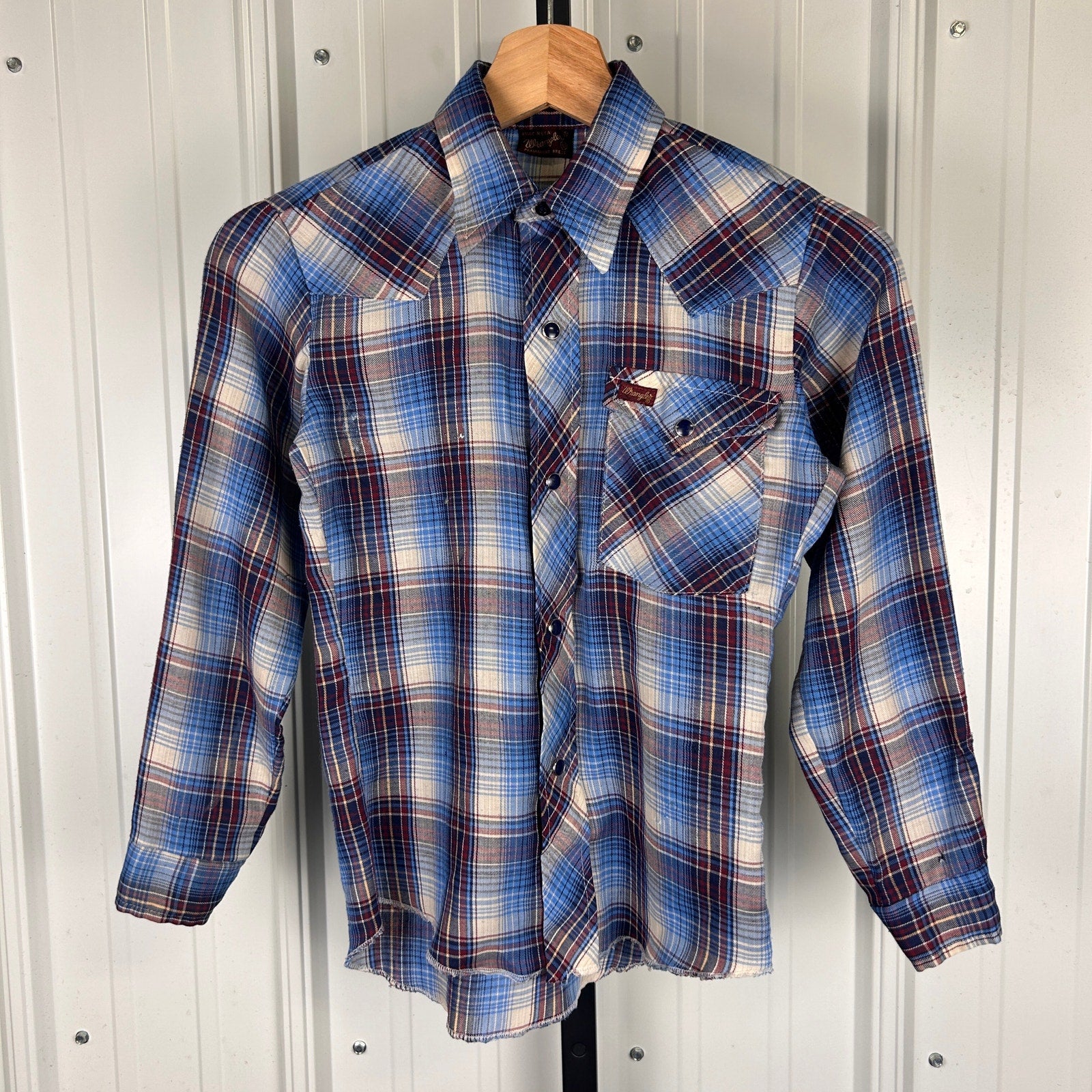 Wrangler Pearl Snap Youth Sz 10 1960s Made in USA Button Up Shirt