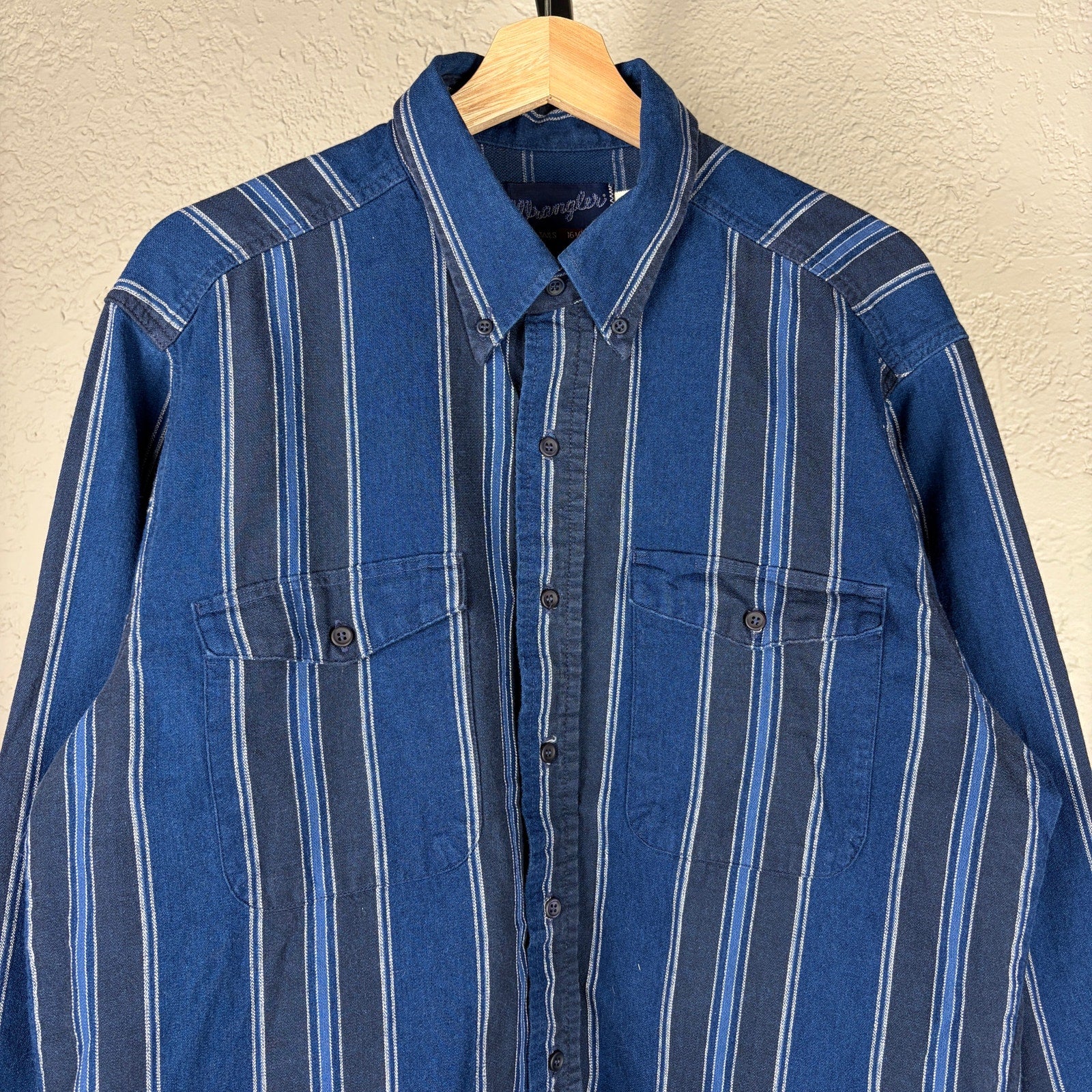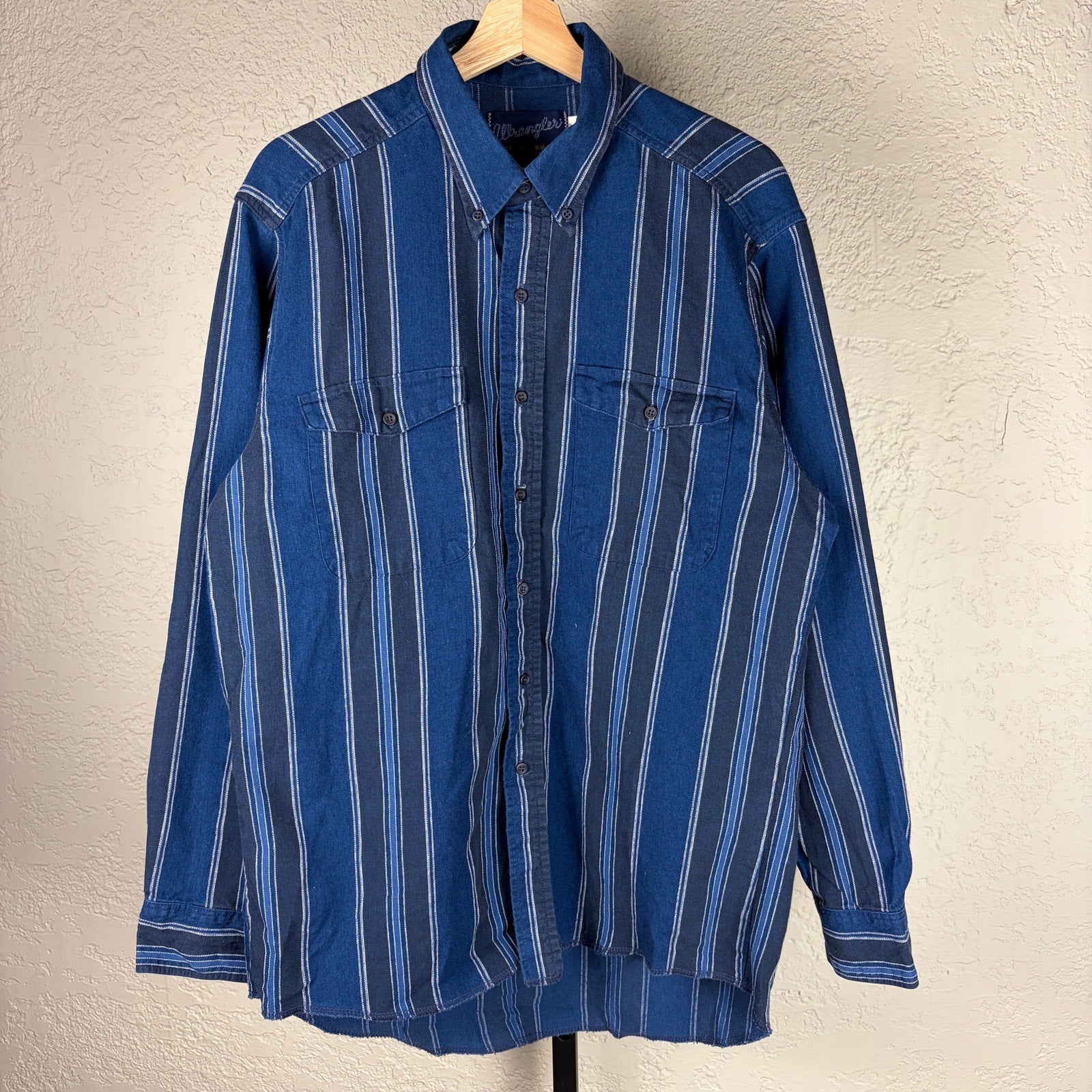 Wrangler Vintage 80s X Long Tails Large 100% Cotton Striped Button Down Shirt