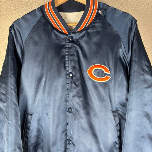 Vintage Chicago Bears Snap Button Distressed XL Satin Varsity Jacket